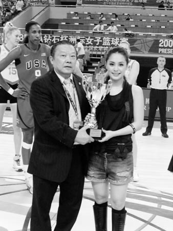 繼商業(yè)廣告在不少電視臺(tái)恢復(fù)播出之后,“不雅照”事件女主角阿嬌(鐘欣桐)昨天現(xiàn)身海寧,為“2008FIBA鉆石杯洲際女子籃球賽”總決賽澳大利亞隊(duì)對(duì)美國隊(duì)的比賽助興,F(xiàn)場,她除了主持開球禮,還被委任為FIBA宣傳大使。