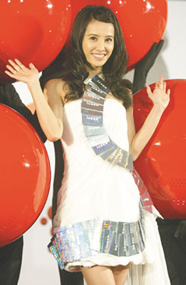 配合代言活動,她昨天穿的一件禮服,被歌迷以超商儲值卡10500點標(biāo)走。事實上,她的歌曲“舞娘”、“Love Love Love”因在奧運(yùn)會場上放送,意外被歐洲注意到,因而進(jìn)入排行榜,她先前又進(jìn)入英國某雜志AskMen網(wǎng)站Top99位女星排行榜,影響力被形容為“喊水會結(jié)凍”,而宣稱中文不好的她,果然聽不懂。