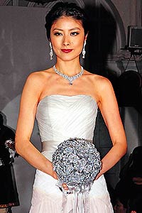 陳慧琳日前為拍廣告而大試婚紗造型,這款白色婚紗最引人注目。