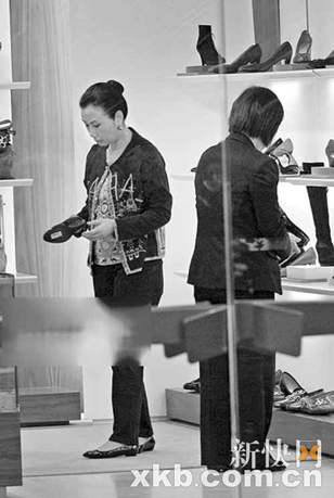 怒氣未消,最適合去“血拼”發(fā)泄。當(dāng)日阿姐一身貴婦Look現(xiàn)身銅鑼灣,先到連卡佛看衫,再步入Fer-ragamo買鞋,只見(jiàn)阿姐揚(yáng)揚(yáng)手,一名男店員即刻擋住門(mén)口,不準(zhǔn)閑雜人等進(jìn)入,以免騷擾阿姐。不僅派頭勁,連店員服務(wù)亦屬一流,無(wú)論阿姐走到哪里,都有兩人貼身侍奉左右,過(guò)氣“視后”余威猶在。