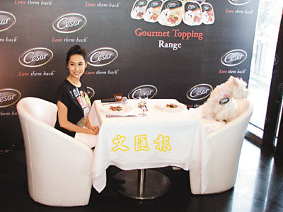 中新網(wǎng)10月22日電 據(jù)香港文匯報(bào)報(bào)道,朱茵昨日出席“西莎主人及愛犬星級(jí)盛宴”,和白威狗一起共進(jìn)午餐,又親自炮制狗狗美食,一向愛狗的朱茵更早于前日就和這頭白威狗一起做訪問及拍照。