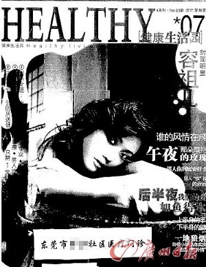 除了劉德華之外,葉玉斌通過幾個月的努力,還收集了其他一些明星肖像被濫用的醫(yī)療宣傳廣告。在東莞某社區(qū)醫(yī)療門診主辦的名為《HEALTH》的醫(yī)療宣傳冊上,右上角寫著“封面明星容祖兒”,而容祖兒的肖像經過專業(yè)工具處理,睜著一雙嫵媚的眼睛,衣著性感火辣。她旁邊的大號標題上寫著“后半夜我們的愛如魚得水”、“上半身的事、下半身的事”等等的曖昧詞句。