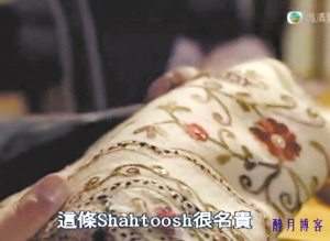 TVB臺慶巨制《珠光寶氣》正在如火如荼熱播中,不過近日有細心觀眾發(fā)現(xiàn),劇中使用了一種名為“沙圖什(Shahtoosh)”的披肩,讓不少正義觀眾相當反感。記者通過觀看該劇發(fā)現(xiàn),引起爭議的劇情發(fā)生在第24集:賀家父子為討“康雅思”(蔡少芬飾)的喜歡,爭先恐后送沙圖什披肩以示愛意,并再三強調(diào)“很難得”、“很名貴”。賀哲男甚至說,自己這條比起父親的有過之而無不及,絕對更昂貴和奢華,而蔡少芬更是對這種披肩愛不釋手。