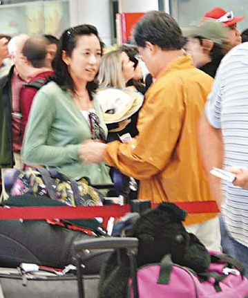 一對新婚夫婦的無名指上都戴有結(jié)婚戒指,全程有講有笑,朱玲玲不時以情深笑眼望著羅康瑞,在排隊辦理登記手續(xù)時,朱玲玲更不忘為丈夫整理衣裝,而后者大為受落之余,亦表現(xiàn)出男士風(fēng)度,為太太打點護(hù)照和負(fù)責(zé)搬行李等粗重工作,儼如溫馨熱戀情侶般。