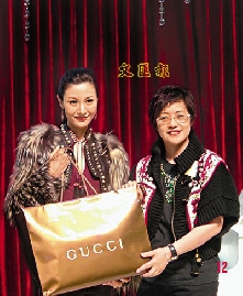 李嘉欣接受主辦方贈(zèng)品。(來(lái)源:香港《文匯報(bào)》)