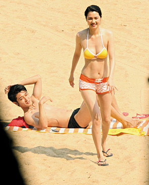 兩人被拍在沙灘一齊曬太陽(yáng)