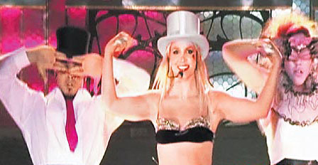 中新網(wǎng)12月18日電 “小甜甜”布蘭妮(Britney Spears)遠(yuǎn)赴日本宣傳新專輯《馬戲團(tuán)》(Circus)。她連2天接通告,繼上松元人志主持的音樂節(jié)目《HEY! HEY! HEY! 》后,她前天又上日本電視臺(tái)的節(jié)目《Best Music Artist》。她深知2節(jié)目對打,還特地?fù)Q打歌服,演唱單曲《花花公子》(Womanizer)時(shí),改穿黑色鑲金閃亮奶罩與熱褲,帽子也換成白色。