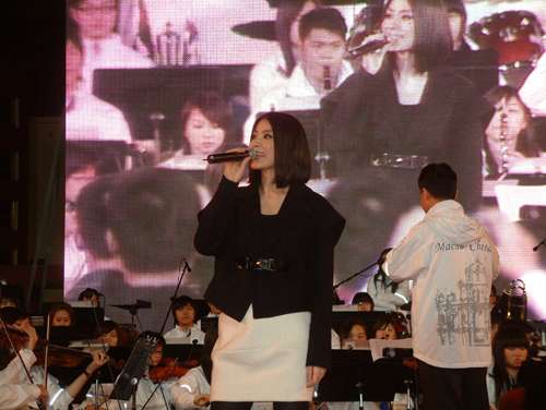 中新網(wǎng)12月22日電 陳慧琳前晚到澳門出席回歸慶;顒,與五十位青少年組成的澳門青年交響樂團合作,演繹《熏衣草》。