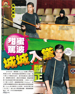 去年10月,熊黛林高調(diào)上門密會郭富城33小時,但事后郭富城照樣矢口否認戀情。其實,兩人一直繼續(xù)暗中交往,繼早前被爆元旦前夜共賞煙花浪漫倒數(shù)之后,1月4日晚11時半,郭富城跟張智霖、余文樂等人在香港銅鑼灣南華會2樓玩桌球,熊黛林又被發(fā)現(xiàn)做“跟得夫人”陪賽?赡苡捎谠趫龅娜慷际恰白约喝恕,熊黛林與郭富城放松了戒備,甜蜜蜜地摟腰,不料被香港“狗仔”拍個正著!