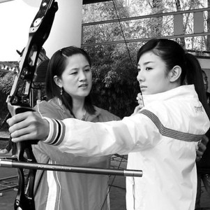 黃奕在劇中扮演中國射箭運動員田會會,她在奧運會上的主要對手就是容祖兒扮演的韓國射箭高手申真依,而兩人的父親也是一對宿敵。黃奕表示,在拍攝這部電視劇之前,她對射箭一竅不通,為此她專門向北京奧運會射箭冠軍張娟娟“拜師”,并邀請她在劇中也客串自己的射箭教練。拍攝前,張娟娟專門對黃奕進行了三天的封閉訓(xùn)練,“每天我都要用重達20磅的弓箭練習(xí)拉弓至少100次,一開始根本拉不滿,于是就想換皮筋,以為裝裝樣子就行了,沒想到被教練一通狂批,然后只能咬牙硬著頭皮練下去。 ”正所謂嚴師出高徒,正是張娟娟的嚴格要求才讓黃奕擁有了熒屏上張弓搭箭的颯爽英姿。
