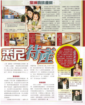 黎姿選擇的私人醫(yī)院是“St George Private Hospital”,在澳大利亞享負(fù)盛名,醫(yī)療設(shè)備與保安均屬一流水準(zhǔn)。這家醫(yī)院離悉尼機(jī)場(chǎng)只有20分鐘路程,擁有多間獨(dú)立的私人病房,由專(zhuān)業(yè)醫(yī)生及專(zhuān)職護(hù)士照顧病人,房?jī)?nèi)設(shè)有獨(dú)立浴室及電視,每間嬰兒房?jī)?nèi)設(shè)有8張嬰兒床,由醫(yī)護(hù)人員24小時(shí)提供貼身照顧。據(jù)保守估計(jì),黎姿若生下孩子約需30萬(wàn)港元。 (阿文)