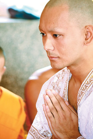 這15天中,Tae每天早上4點(diǎn)半起床念經(jīng),然后光腳到附近住家拿取米飯回寺廟,再到民宅念經(jīng)祈福。他在寺廟中沒有姓名也沒有階級(jí),日日跟著師父誦經(jīng)、打坐,他說:“我選在一個(gè)很偏僻的廟中出家,山上很冷,頂著光頭常讓我發(fā)抖,但因?yàn)檫@段時(shí)間我日日伴佛,心情變得很平靜!