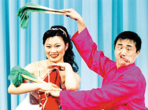 作為趙本山弟子中唯一一個從小學習二人轉(zhuǎn)的專業(yè)演員,閆光明不僅嗓子好、武功好,戲路也寬,在“首屆趙本山杯二人轉(zhuǎn)大獎賽”中曾獲表演銀獎。閆光明非?炭,雖然年齡不小了,但現(xiàn)在還是遼寧大學本山藝術(shù)學院民族藝術(shù)表演專業(yè)的大四學生。去年的全國大學生藝術(shù)節(jié)上,閆光明和妻子趙海燕以一段新編二人轉(zhuǎn)《梁山伯與祝英臺》獲得一等獎。能有今天的成績,閆光明自己也“沒想到”:“我生在二人轉(zhuǎn)世家,能有今天的成績說明這么多年的努力沒白費。”他也不忘感謝師傅趙本山,“師傅讓二人轉(zhuǎn)越來越紅火,我得繼續(xù)努力,把我熱愛的民間藝術(shù)發(fā)揚光大!蔽枧_上擅長模仿趙本山的閆光明說,“我們對天津觀眾很熟悉,因為天津有劉老根大舞臺,我認識了很多天津朋友。這次來天津演出,希望大家一樣支持我!