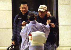 近日,記者遇到了姜文一家三口外出吃飯的溫馨場面。凌晨2點(diǎn)左右,姜文被攙扶著走出酒館。一同走出的還有周杰及一位友人。一行人已走出很遠(yuǎn),突然,從店內(nèi)追出一位女服務(wù)員。原來醉酒的姜文離開時(shí)忘了穿鞋,服務(wù)員親自幫姜文把鞋穿上,豪爽的姜文送上一個(gè)熊抱。