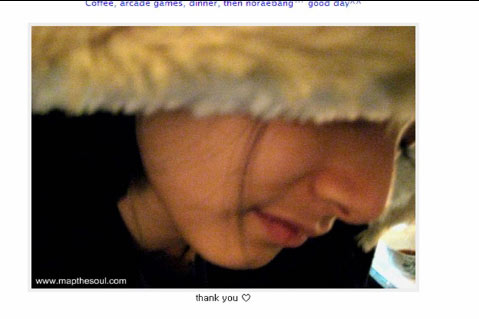 Tablo在上傳照片后,還寫了照片說明。他寫到:“白色情人節(jié),理應(yīng)在氣氛浪漫的咖啡屋裝出死人的樣子,呵呵,咖啡、娛樂室、吃飯,還有練歌房,快樂的一天^^!被仡櫫水(dāng)時(shí)幸福的樣子。