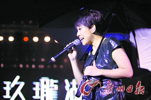 在主持人的隆重介紹之下,林憶蓮一出場即引起了在場嘉賓的熱烈掌聲。依舊一頭時尚短發(fā)的林憶蓮,只穿一襲黑色連衣短裙登臺,簡潔而不失時尚感。在唱到第二首《聽說愛情回來過》時,林憶蓮索性走下臺去和雨中捧場的嘉賓一一握手,將晚會的氣氛推向一個小高潮。而當《至少還有你》那熟悉的旋律響起,現場氣氛更是達到了頂點,為盛典增添了完美的樂章。
