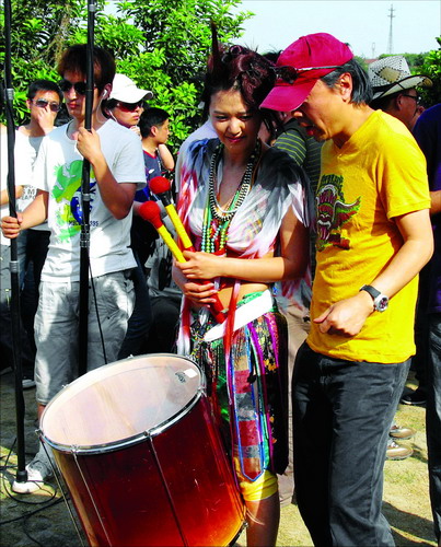 在劇照上,譚維維穿著清涼,再加上混合了各種民族元素的鮮艷裝飾和紋身,火辣的身材暴露無(wú)疑。更加令人驚奇是譚維維的發(fā)型,一縷縷火箭般的沖天直發(fā),頗有漫畫(huà)卡通人物的感覺(jué)。而崔健打造出這般造型,是為了表現(xiàn)未來(lái)的風(fēng)格,還是僅僅用于樂(lè)隊(duì)的表演,尚不得而知。激烈的鼓樂(lè)、動(dòng)感的舞蹈、火辣的裝束、夸張的發(fā)型,崔健譚維維共同打造的這部發(fā)生在2029年的未來(lái)成都故事,最終將呈現(xiàn)出一番怎樣的效果,讓人非常期待。