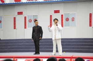 昨日早上8點(diǎn)半,“心連心”演出主會(huì)場(chǎng)的演出在綿竹最大的救災(zāi)板房安置區(qū)舉行。據(jù)悉,所有的演員昨天5點(diǎn)鐘起床化妝,再?gòu)牡玛?yáng)駐地趕到演出現(xiàn)場(chǎng)。而他們當(dāng)中的成龍前晚半夜12點(diǎn)才趕到四川;正在香港進(jìn)修CEO的趙本山更是專門趕回來(lái)。即使半夜到德陽(yáng),也要專門趕到綿竹現(xiàn)場(chǎng)彩排。前天下午,在“心連心”位于綿竹市二號(hào)立交橋板房區(qū)的主會(huì)場(chǎng),里里外外圍滿了前來(lái)觀看的鄉(xiāng)親。在板房搭建起來(lái)的簡(jiǎn)易舞臺(tái)上,演員們正在彩排。開場(chǎng)曲是央視24位主持人與4位歌手合唱的《三百六十五個(gè)祝!贰
