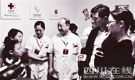 新聞發(fā)布會后,王菲、李亞鵬夫婦來到了成都市兒童醫(yī)院和西蟬整形美容醫(yī)院,探望做唇裂手術(shù)的孩子們。當(dāng)?shù)萌藗兊弥絹淼氖峭醴品驄D時,醫(yī)院就被包圍得水泄不同,人群大叫“王菲”的名字。
