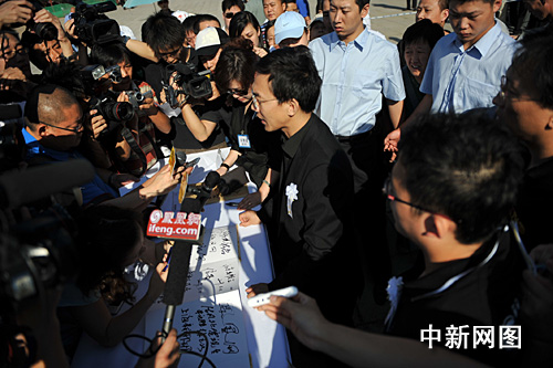 但也許因?yàn)槭潞筇颐筒环奖,追悼?huì)結(jié)束后,只有郎永淳出來(lái)向觀眾鞠躬表達(dá)感謝。