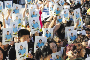 喜歡羅京的觀眾在網(wǎng)上自稱“菠蘿團(tuán)”,“菠蘿團(tuán)”用200朵白玫瑰制成的花牌和紀(jì)念冊表達(dá)自己的哀思,“主要是由羅老師的照片和菠蘿們的祝福組合而成。這個紀(jì)念冊的制作費是300多元,但制作方看我們是送給羅老師的,最后決定免費為我們制作。我們還做了一個心形花牌,由200朵白玫瑰和羅老師的照片組成。白玫瑰的花語是尊敬”,紀(jì)念冊已經(jīng)送到羅京家屬手中。昨天現(xiàn)場“菠蘿”們統(tǒng)一手系黃絲帶,從凌晨5點就有人開車從天津趕到八寶山,“菠蘿”里有老人、孕婦,也有剛高考完的學(xué)生。這些天來,喜愛羅京的眾多粉絲自發(fā)在網(wǎng)上悼念羅京。網(wǎng)上獻(xiàn)花、上香、寫悼文者眾多。羅京生前曾在一次晚會上唱過周杰倫的《千里之外》,有“菠蘿”模仿《千里之外》為羅京寫了一首《京哥走好》——“電腦剛打開,噩耗就傳來,實在太意外;偌大中央臺,數(shù)你最有才,偏偏患上癌;工作到現(xiàn)在,將近三十載,新聞你主宰……”記者 張艷