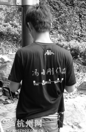 果然,連從資嚴慧院走出來的工作人員,不少都穿的是這個品牌的圓領(lǐng)T恤,后背上還印有“馮小剛作品 唐山大地震”等字樣。
