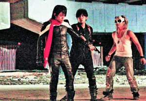 一身黑恤衫、黑褲、長靴,肩膀掛上槍袋、長槍,打扮有型,英氣十足;但和女主角江語晨連吻戲都沒有!