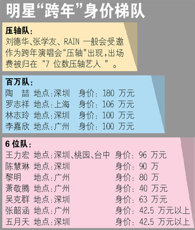 由于圣誕和元旦雙節(jié)即將到來,港臺和內(nèi)地明星馬上又要迎來一年一度的搶錢“尖峰時刻”。往年,臺灣地區(qū)的明星基本以島內(nèi)“串場”為主, 元旦除夕晚從臺北一路南下,一個晚上坐飛機或直升機趕場賺錢。但今年起,大陸各大衛(wèi)視的跨年演唱會“搶星大戰(zhàn)”升級,為港臺明星大開“錢”途。僅北京、上海、廣州、深圳等幾大城市舉辦的跨年秀已讓港臺明星跑到腳軟,且這些電視臺開出的價格大大高出臺灣或者香港同樣活動的報價,因此內(nèi)地地區(qū)的跨年活動明顯更有吸引力。