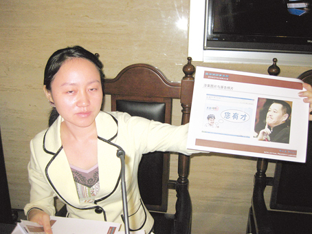 “該卡通肖像與原告本人的肖像具有極大相似性,結(jié)合該卡通肖像所搭配的旁白表述等,普通人很容易辨識(shí)出該形象是原告的卡通肖像,該卡通人物的主要作用就是為被告的產(chǎn)品做宣傳!痹娣铰蓭煯(dāng)庭播放完帶有涉案廣告的光盤后,指著曾9次出現(xiàn)在該廣告中的卡通人物說道。