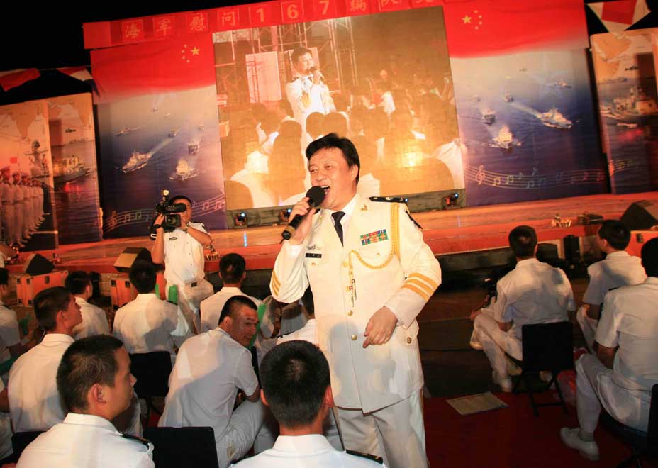 中新網(wǎng)8月22日電 8月21日晚,宋祖英、呂繼宏等多位名星,齊聚南海艦隊(duì)某軍港,為剛剛凱旋的海軍第二批護(hù)航編隊(duì)官兵獻(xiàn)上了一臺(tái)精彩的演出。