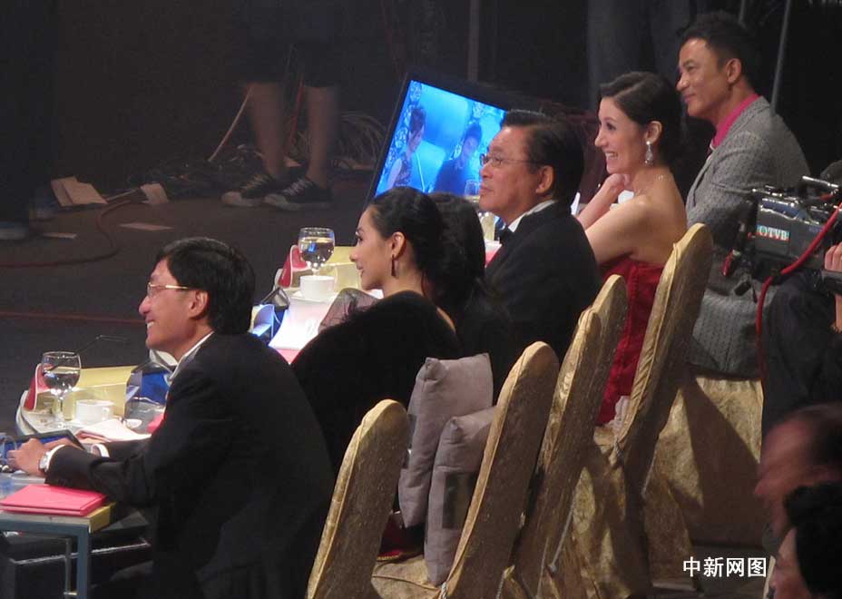 圖為:本屆港姐決賽五位評判(由遠(yuǎn)至近):藝人任達(dá)華、李嘉欣、立法會議員林健鋒、奧運體操冠軍劉璇、太平紳士林天福。(攝影:余瑞東)