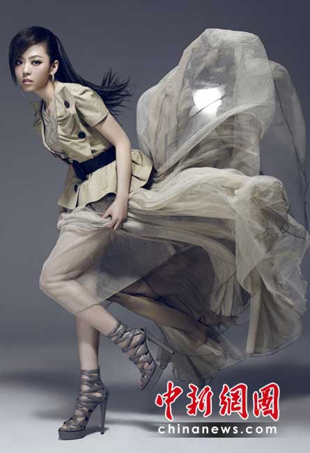內(nèi)地女歌手張靚穎以全新造型登陸國(guó)內(nèi)某時(shí)尚平面雜志,成為封面女郎,幾款造型落落大方,讓人眼前一亮。