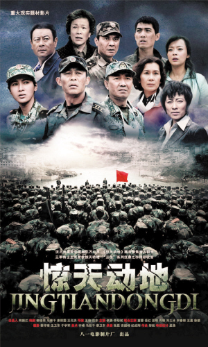 在紀念汶川大地震一周年之際,八一電影制片廠舉行了再現(xiàn)部隊官兵抗震救災的故事片《驚天動地》的看片會。參拍部隊和四川災區(qū)群眾代表共同出席了看片會。