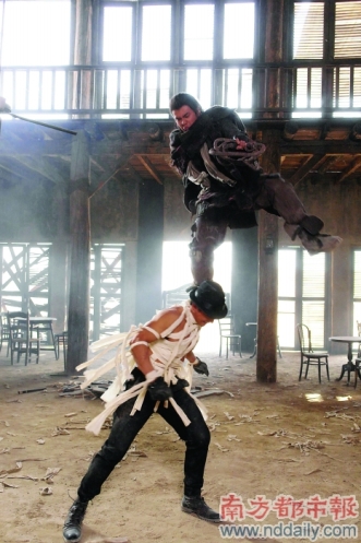 從劇照上看,周董的打扮神似他在《牛仔很忙》mv里的造型,只是多了一條巨型圍巾,還有一條皮鞭。這條皮鞭先前曝光的劇照里并沒出現(xiàn)過,顯然是進(jìn)入武戲部分后周董拿出的“家伙”。圖中周杰倫和好友劉畊宏演的繃帶男正進(jìn)行一場激烈的打斗,而繃帶男的武器竟是繃帶,他上身繃帶齊發(fā),仿佛白發(fā)魔女再世。另外,據(jù)悉,《刺陵》鎖定圣誕檔期,將于12月中旬在全球同步發(fā)行。