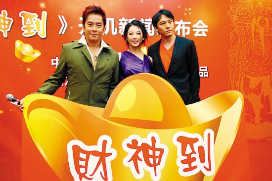 中新網10月22日電 電影《財神到》昨日在上海舉行開鏡發(fā)布會, 監(jiān)制黃岳泰、導演阮世生率影片主角譚詠麟(阿倫)、張震、張雨綺出席。阿倫時隔24 年再演“財神”一角,在片中“送財”的他,生活中也不忘籌錢接濟成奎安(大傻)妻兒。