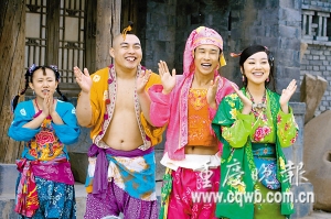 昨天新畫面公布的2分05秒“終極版《三槍拍案驚奇》預(yù)告片”中,前半部分有明顯的喜劇風(fēng)格:小沈陽先是用東北話問:“怎么說呢?”接著是叉著腰、扭著頭,用《不差錢》中的腔調(diào)甩出一句話:“跑什么呢,你趕緊回來!”閆妮則依然是《武林外傳》中的派頭,還冒出了一句英文臺詞:“How much?(多少錢)”扮演捕快隊長的趙本山也在預(yù)告片中出現(xiàn),一身盔甲,背上背了幾支箭,惡狠狠地問了一句:“麻子呢?”而小沈陽在一個聲音問到他是不是買了把槍時,說了句:“這個真的沒有。”立刻讓人想起他演的春晚小品《不差錢》。