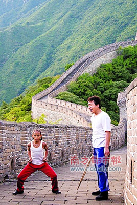 由成龍和威爾·史密斯的兒子賈登·史密斯(JadenSmith)主演的《功夫夢(mèng)》(The Karate Kids)近日曝光了幾張官方劇照,畫(huà)面所見(jiàn),成龍?jiān)陂L(zhǎng)城上訓(xùn)練賈登·史密斯,小子架勢(shì)十足。該片由中影集團(tuán)、索尼·哥倫比亞和威爾·史密斯(Will Smith)旗下的Overbrook娛樂(lè)公司聯(lián)合投資拍攝,將于明年6月11日在北美公映,中國(guó)也將同步引進(jìn)。