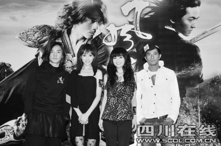 相比郭富城的一本正經(jīng),鄭伊健很會增加訪問的喜劇氛圍,不斷地和身邊的阿Sa開玩笑,“嗯,以前我都是把她當哥們,沒有一點女人味,這回演《風云2》,她終于有那么一點點女人味了!币幌捔畎a羞得滿臉通紅:“反正他一直把我當?shù)艿芑蛘呙妹美玻軌牡,有一次買了一臺手機,向我大力推薦,其實對于這種高科技的東西,我一向比較白癡,結(jié)果我買回來不會用,一個星期后只好放棄,再也沒用過。”說得旁邊的鄭伊健又大笑起來。阿Sa還抱怨自己《風云2》中的對白太少,“只說了大概6次的‘風哥哥’和1次‘云哥哥,你別打了’,我希望下次導演能拍個女版《風云》,讓我和唐嫣也能成為真正的主角,巾幗不讓須眉嘛”。阿Sa還表示,自己一定會去給鄭伊健的演唱會捧場,”我買了5張票,因為他是我的大佬(大哥)啊!