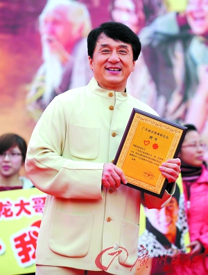 成龍大哥為了新片《大兵小將》做宣傳很賣力,廣州作為第三站,行程卻安排了三場發(fā)布會。還不包括流產(chǎn)的一場。為了迎接成龍,各主辦方都掐著時間搞活動,而成龍所到之處,粉絲的熱情讓空氣陡然熱起來。當(dāng)天,被授予廣東志愿者協(xié)會名譽會長的成龍將300張《大兵小將》電影票送給廣州亞運會志愿者!