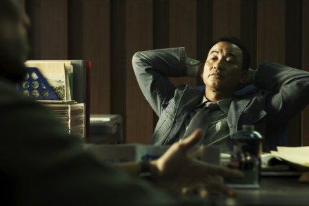 在扣人心弦的音樂聲中,從任達(dá)華關(guān)鎖的雙眉間,似乎可以竊看到剛剛被升為槍擊案專案調(diào)查組組長(zhǎng)孫局長(zhǎng)內(nèi)心的矛盾和掙扎。這場(chǎng)戲恰如其分地表達(dá)了刑警角色此時(shí)此刻矛盾人生的徘徊心情,導(dǎo)演十分滿意。(麥田)