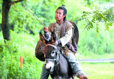 昨日記者探班的戲份是影片的開場:小沈陽飾演的凡人小鞋匠騎著毛驢準(zhǔn)備闖蕩江湖。只見小沈陽騎著毛驢一臉悠然自得狀,一邊用樹枝吊起一根胡蘿卜在毛驢的眼前搖晃。這場簡單的戲竟然拍了6條才過,全因小沈陽總是讓毛驢吃不到胡蘿卜而將其“惹惱”,生氣的毛驢每次都在同一個(gè)地點(diǎn)停下,任憑小沈陽怎樣吆喝,就是紋絲不動(dòng),引得小沈陽頻頻笑場。而聰明的毛驢卻在眾人不注意之時(shí),咬住胡蘿卜便不松口。(特派記者孫琳琳)