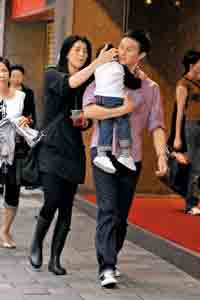 當(dāng)張智霖和太太、兒子見面后,袁詠儀發(fā)現(xiàn)有記者在場,面色即變得非常緊張,更吩咐兒子不要望向鏡頭,其后兩人帶兒子上保母車,交由工人代為照顧,二人即走入商場。