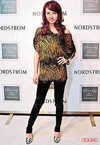 目前在美國(guó)10多個(gè)城市及加拿大都可看到“72變”,最快明年進(jìn)軍內(nèi)地、新加坡、馬來西亞市場(chǎng),她昨天被問臺(tái)灣地區(qū)何時(shí)可買到“72變”服飾,笑說:“還不知道,我比任何人都希望越快越好!弊蛱飕F(xiàn)場(chǎng)展示她設(shè)計(jì)的1千件限量T恤,1件約1500元臺(tái)幣,當(dāng)場(chǎng)被搶購(gòu)一空,為公司進(jìn)帳臺(tái)幣150萬元。