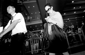 昨天下午2點多,記者在航站樓等待中國游泳隊回國時,發(fā)現(xiàn)了一位星味十足的女子走出國際出口。