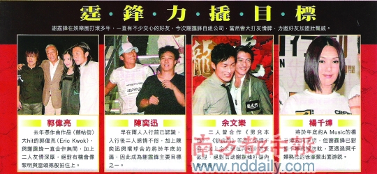 謝霆鋒自組公司的傳聞不是一天兩天的事兒了,昨天新鮮出爐的香港某周刊又重提“舊事”,稱盡管英皇開出不少優(yōu)越條件留人,但謝霆鋒“去意已決”,而老婆張柏芝亦是“無限量支持”,當做新公司第一簽約藝人。據(jù)稱謝霆鋒心中已有不少“挖墻腳”的人選,目標包括陳奕迅、楊千女華、余文樂等一幫友人,楊千女華對此以“還沒正式談,我自己都還不知道,告訴你什么呢?”作回應!x霆鋒與英皇的合約尚未到期,為何老刮“跳槽”這陣風?恐怕是:管它真亦假,先炒再說!