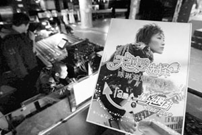 今晚,陳琳的親人和她生前的好友將在這里同唱陳琳的歌,一起緬懷她!斑h離世間塵囂,琳音回響天堂”,星光現(xiàn)場今晚的陳琳追思會現(xiàn)場上午已經(jīng)布置完畢,這是歌迷為偶像寫的條幅,掛在現(xiàn)場兩側(cè)。