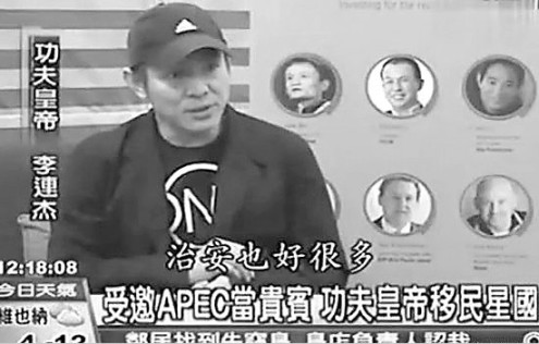 “功夫皇帝”李連杰移民新加坡一直是“公開的秘密”,日前他受邀以中小企業(yè)代表身份參加在新加坡舉行的APEC會(huì)議。當(dāng)時(shí)主持人問他現(xiàn)在移民新加坡了,對(duì)新加坡有何看法,李連杰表示,相比其他城市,新加坡干凈很多,治安好很多,天氣也熱很多。同時(shí)他還透露,辦壹基金是靠妻子利智給錢。