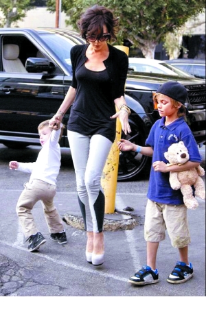 上周五,剛從倫敦返回洛杉磯的貝嫂就化身“慈母”,帶著4歲的克魯茲和7歲的羅密歐,前往好萊塢北部一家著名的酸奶屋買冰激凌。不過貝嫂這次一改往日的精致妝容和得體衣著,梳著有些凌亂的頭發(fā),穿著最低調(diào)的簡(jiǎn)約款黑色上衣和灰色細(xì)腿褲,領(lǐng)著兩個(gè)孩子在街上走。如果脫掉腳下那雙具有貝嫂招牌裝扮的、大于10厘米的高跟鞋的話,維多利亞也不過是個(gè)清瘦一點(diǎn)的家庭婦女罷了。