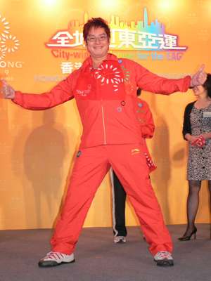 中新網(wǎng)12月1日電 譚詠麟昨日以一身紅裝及染紅發(fā)出席迎接?xùn)|亞運動會的活動,譚詠麟不僅在活動中透露兒子曉風(fēng)愛打籃球外,還對時下的娛樂熱點進(jìn)行點評,更自曝曾遭女歌迷“胸襲”。