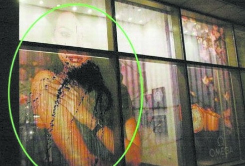 過(guò)了大概半個(gè)小時(shí)的樣子,這輛車(chē)又開(kāi)到了酒店門(mén)前,車(chē)上下來(lái)了兩個(gè)用帽子遮著臉的男子,他們手里拿著墨汁,走到酒店?yáng)|側(cè)一間鉑金店的門(mén)前,對(duì)著櫥窗里的章子怡代言海報(bào),將墨汁潑了上去,然后撒腿跑上了車(chē)。之后,這輛車(chē)?yán)瘓?bào)飛快離開(kāi)了酒店,門(mén)前的記者和保安都被這一幕弄得有點(diǎn)莫名其妙。